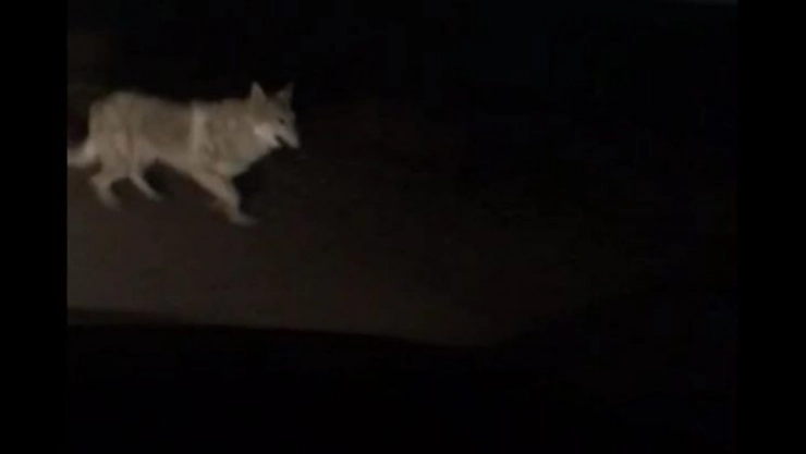 Kent merkezinde yiyecek arayan kurtlar, cep telefonuyla görüntülendi.