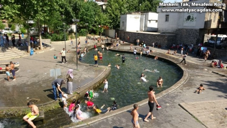 Sur ilçesine bağlı Melikahmet Mahallesi’ndeki Anzele Parkı’nda bulunan tarihi Anzele suyu, havaların 40 derecenin üzerinde seyretmesiyle birlikte çocukların oyun ve yüzme alanına döndü. Anzele suyunun yasak ve tehlikeli olmasına rağmen yüzen çocuklar, korona virüs tedbirlerini ve sosyal mesafeyi unutarak serinledi.