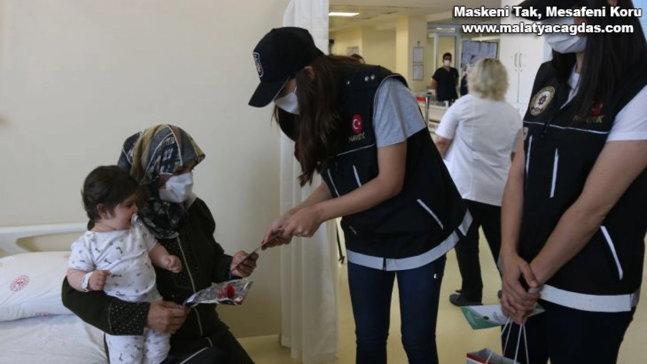 Polis ekipleri hastanede annelerin Anneler Günü’nü kutlayıp, çiçek vererek bilgilendirici broşür dağıttı.