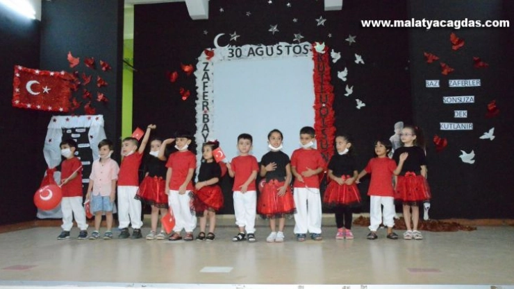 Minikler, ardından 30 Ağustos Zafer Bayramını anlatan animasyon gösterisini izleyip koro halinde şiir okuduktan sonra 10. Yıl Marşı eşliğinde gösteri yaptı. Etkinlikte 30 Ağustos Zafer Bayramını anlatan Hacivat ve Karagöz kukla gösterisi de yapıldı.