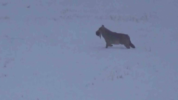 Sivas’ın Zara ilçesinde doğa gezisine çıkan bir vatandaş, Zara-İmranlı yolu üzerinde bir arazide ağzında ördek taşıyan bir kurdu, cep telefonu kamerasıyla görüntüledi.