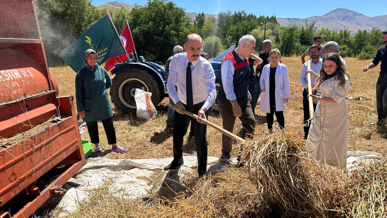 Hasat programına, Doğanşehir İlçe Tarım ve Orman Müdürü İsmet Çılğın, Zeynep Ana Kadın Kooperatifi Başkanı Tuba Çiçek ile kooperatif üyeleri katıldı