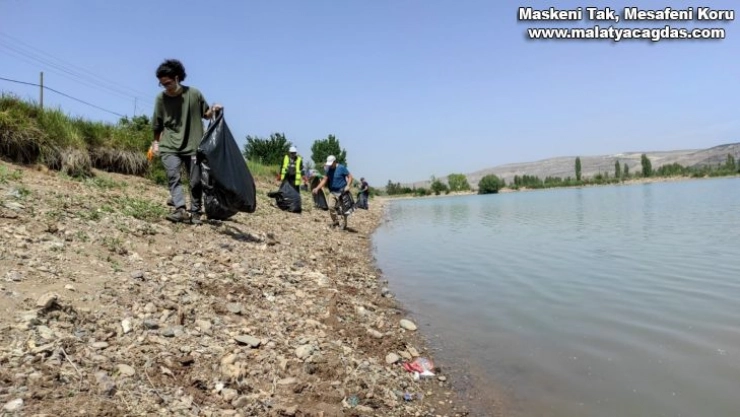 Sivas'ta bir araya gelen doğaseverler, çevre kirliliğine dikkat çekmek için göl ve mesire alanlarında çevre temizliği yaptı.