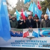 Cumhuriyet meydanında yapılan basın açıklamasına Doğu Türkistan Meclisi Başkanı Seyit Tümtürk ile birlikte Doğu Türkistan Kültür ve Dayanışma Derneği üyeleri ve vatandaşlar katıldı. Doğu Türkistan’ın bağımsızlığını kazanacağına inandıklarını söyleyen Tümtürk, “Bugün 10 Aralık Dünya İnsan Hakları Günü ve bu gün ne anlam ifade ediyor, dünyada nasıl kutlanıyor, kimleri içerisine alıyor, bu gün kim için uygulanıyor? Bunu sorgulamak istiyoruz. Bugün Doğu Türkistan’da 1 buçuk milyarlık Çin işgalci komünist yönetiminin işgali altında 70 yıldır zulüm gören 35 milyon Müslüman Türk, maalesef ne bugünü biliyor, ne bu günden haberli, ne de insan haklarının ne olduğu onlara hatırlatılmış değil. Birleşmiş Milletler İnsan Hakları Evrensel Beyannamesinde yaşama hakkı, eğitim hakkı, seyahat özgürlüğü, dini ibadetler özgürlüğü, aile ve her türlü örf, adet ve gelenekleri içine alan, onların şeref namus ve haysiyetlerini koruma altına alan beyanname maalesef Çin tarafından ihlal edilmekte ve bugün 35 milyon Müslüman Türk topyekün katliamla yok edilmeyle ve soykırımla karşı karşıya bırakılmış durumda. Doğu Türkistan 1949 yılına kadar bağımsız olan bir devlet ve yakın tarihimizde Türkiye Cumhuriyeti’nden başka bağımsız bir devletin olmadığı bir dönemde, 2. Türk Cumhuriyeti olarak tarihteki yerini almış fakat Rus, Çin ve İngiliz iş birliği ile tekrar yıkılmıştır. Doğu Türkistan 70 yıldır işgal altında ve Türk ve İslam dünyasına sesleniyor, namusumuza, imanımıza, vatanımıza, canımıza sahip çıkamıyoruz diye. 5 milyon erkeğimiz kamplarda ve cezaevlerinde işkence ile soykırıma tabi tutulmuş durumda ve Çin yönetimi bu insanların evlerine milyonlarca Çinli erkeği, kardeş aile projesi adı altında Müslüman ailelerin evlerine yerleştirmiş ve bizi zorla imha etmekle karşı karşıya bırakmış durumda. 70. yılını yaşadığımız işgalin asla kabul edilmeyeceğini ve Doğu Türkistan’ın bir gün mutlaka bağımsız olacağına inanıyoruz. Buna güveniyoruz ve bu uğurda canımızı feda etmeye hepimiz hazırız” dedi.