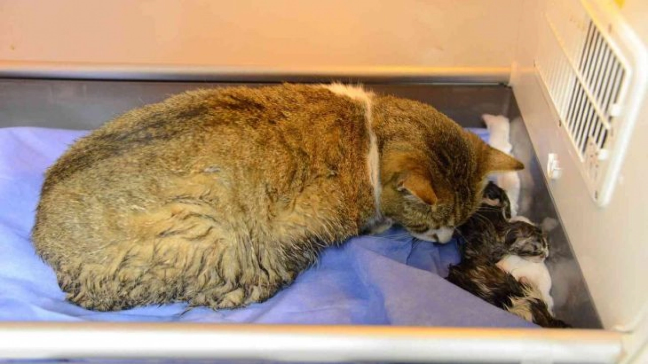 Doğum yapmakta zorlanan kediye sezaryen yapıldı