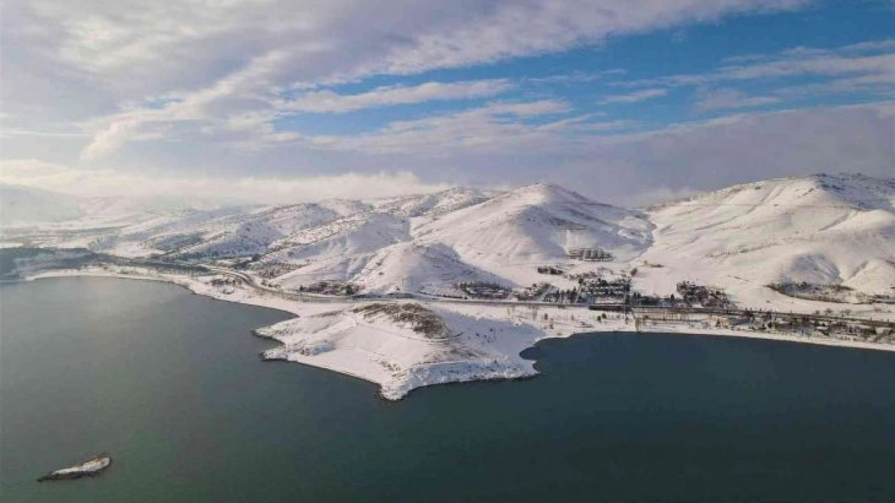 Elazığ’da doğunun gizli denizi olarak bilinen Hazar Gölü’nde kış güzelliği, seyrine doyum olmayan manzaralar sunuyor.