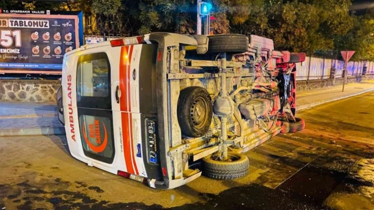 Diyarbakır’da dolmuş ile çarpışan ambulansın devrildiği kazada 3 kişi yaralandı.