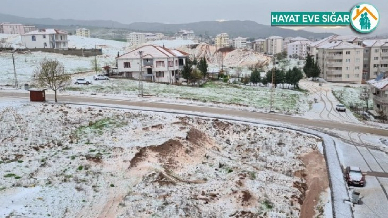 Adıyaman’ın Gölbaşı ilçesi dolu yağışı sonrası beyaza büründü.