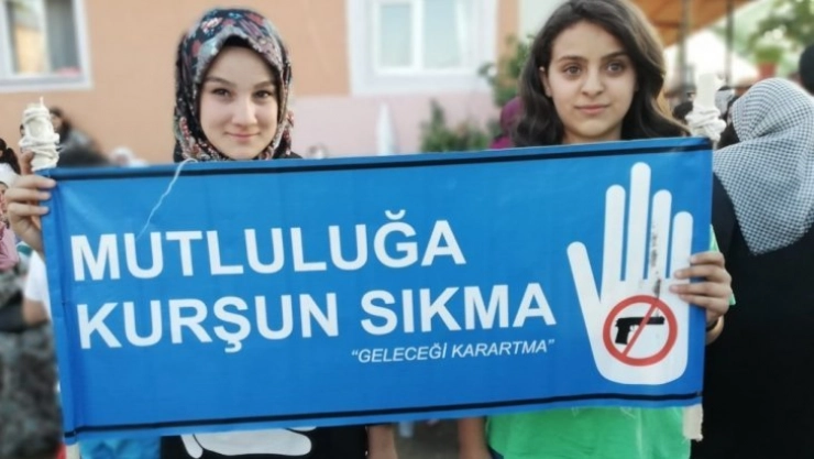 Bu şekilde son günlerde artan kadın cinayetlerine de farkındalık oluşturmak isteyen gençlerden Azra Öz, “Günümüzde kadına yönelik şiddetlerde artış yaşandı. Kadına şiddete hayır diyoruz, silahlar sussun kadınlar öldürülmesin” diyerek tepkisini dile getirdi.