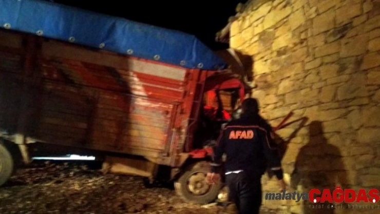 Duvara çarpan kamyonda sıkışan 2 kişi yaralandı