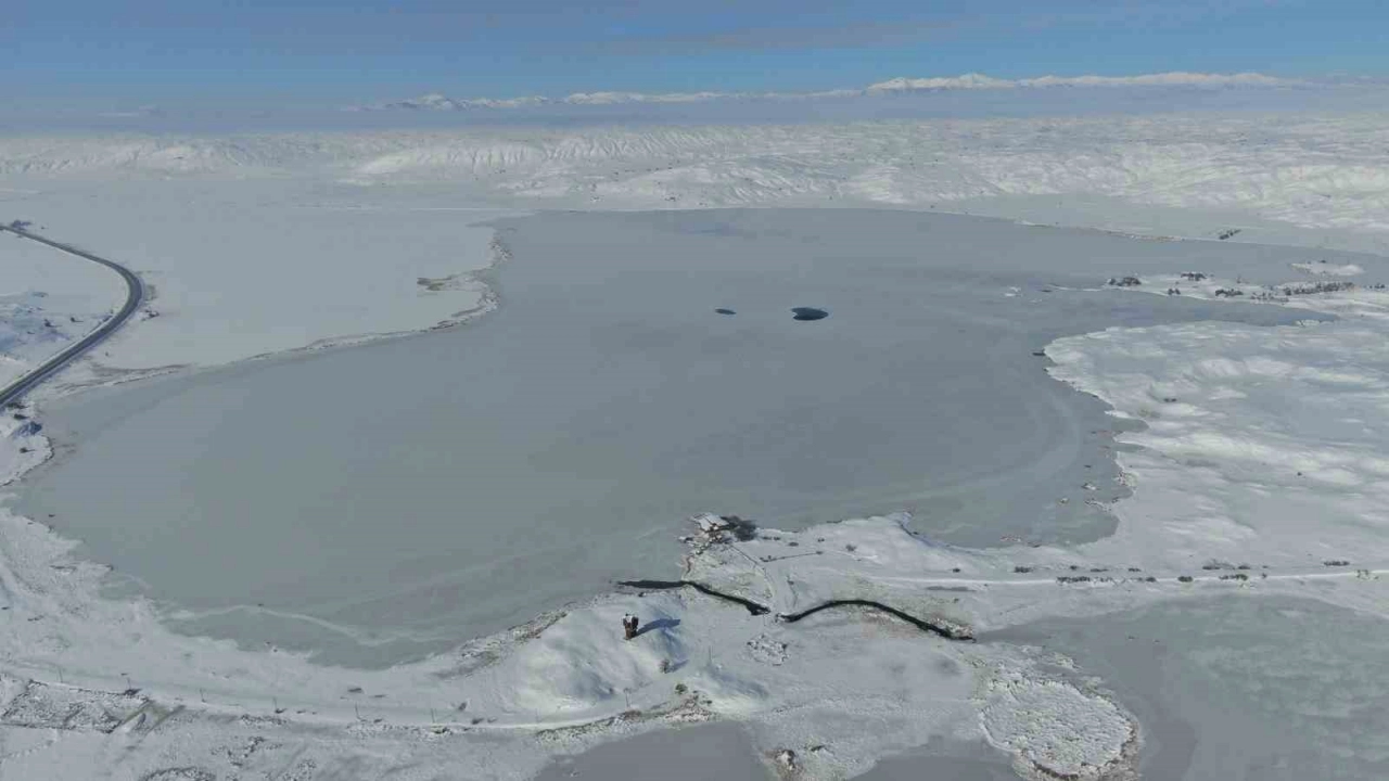 Sivas’ta birçok efsaneye konu olan ve yaz aylarında binlerce göçmen kuşu ağırlayan Tödürge Gölü tamamen buzla kaplandı. Soğuk havanın etkisiyle donan gölde kartpostallık görüntüler ortaya çıktı.