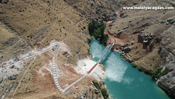 Ekipler, yerli ve yabancı turistlerin alanı daha rahat ziyaret edebilmelerini sağlamak için 5 bin metrekare alan içerisine 1,8 kilometre uzunluğunda, zeminin ahşap travers ve kiremit irmiğinin kullanılan yürüyüş yolunun yüzde 65’ini tamamladı.