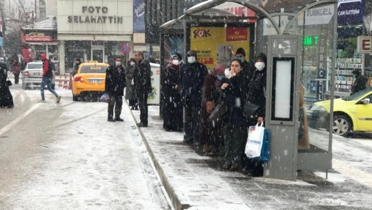 Elazığ’da öğle saatlerinde başlayan kar yağışı kenti beyaza bürüdü.