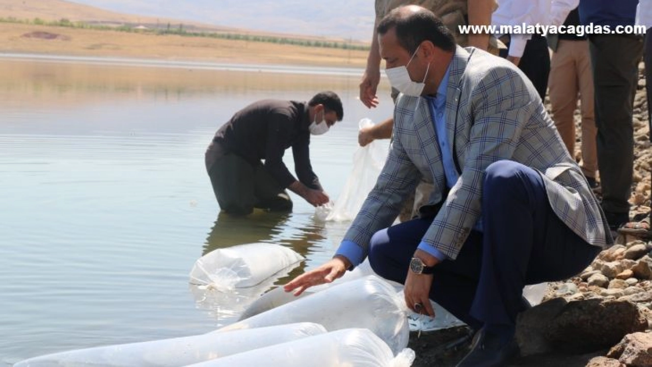 Elazığ’ın Karakoçan ilçesinde bulundan Kalecik Baraj Göletine, 100 bin yavru sazan balığı bırakıldı.