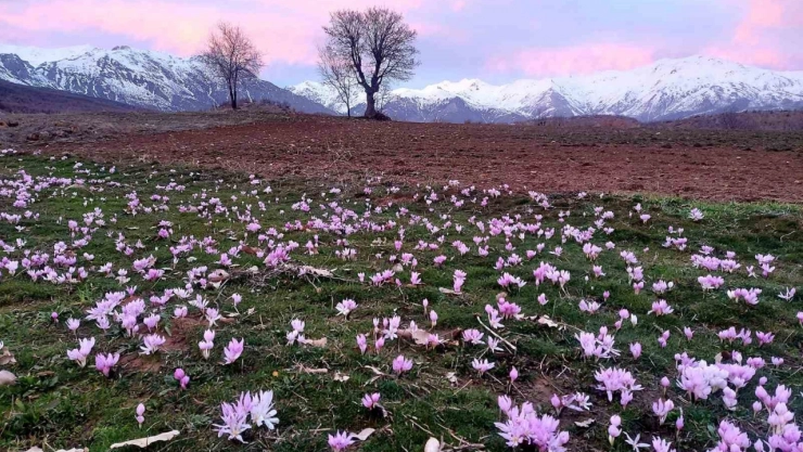 Elazığ'da baharın habercisi çiğdemler erken açtı