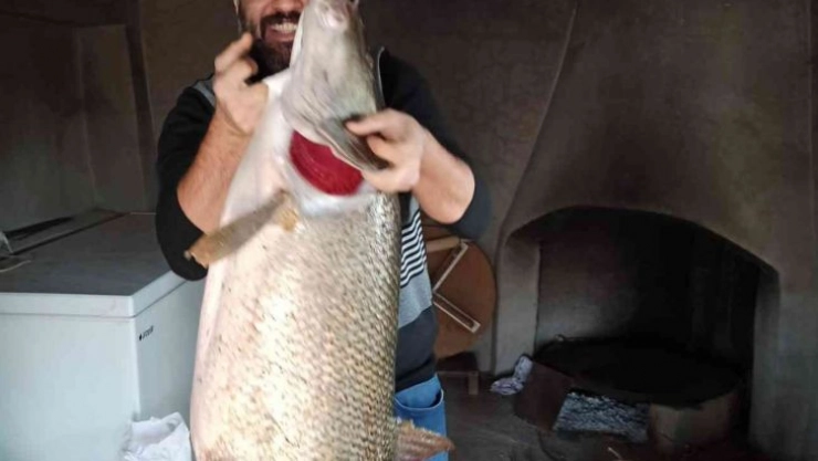 Elazığ'da balıkçıların ağına 150 ve 130 santim boyunda dev turna balıkları takıldı. 50 ve 30 kilogram ağırlığında olan balıklar satışa çıkarıldı.