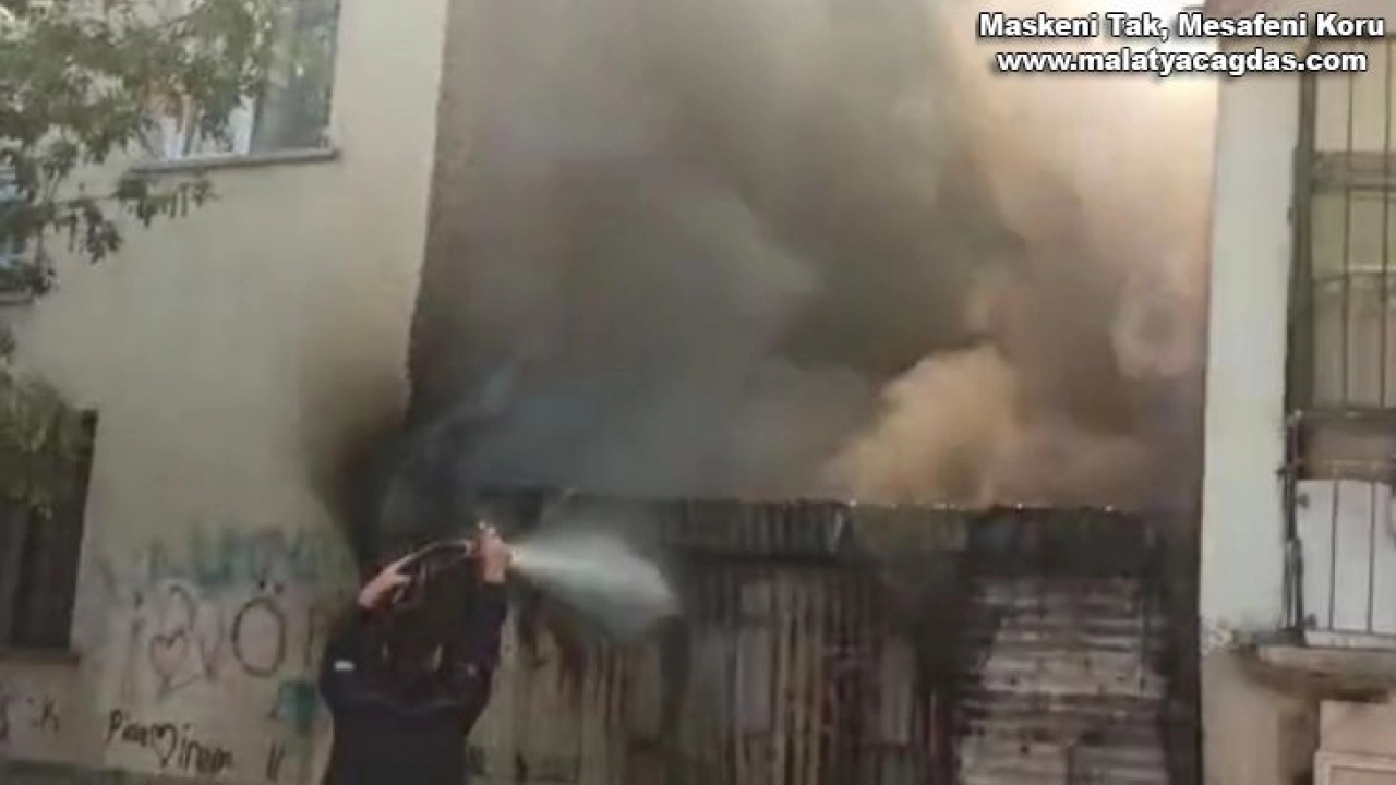 Elazığ'da baraka yandı, iki binaya sıçraması ekiplerin müdahalesiyle engellendi