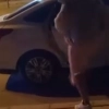 Elazığ'da bir kadın, tartıştığı şahsın arabasına saldırdı
