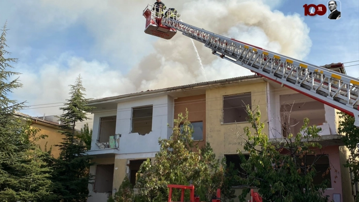 Cumhuriyet Mahallesi'nde bulunan ve 6 Şubat'taki Kahramanmaraş merkezli depremlerde ağır hasar gördüğü için boşaltılan 3 katlı apartmanın çatı katında henüz belirlenemeyen nedenle yangın çıktı.