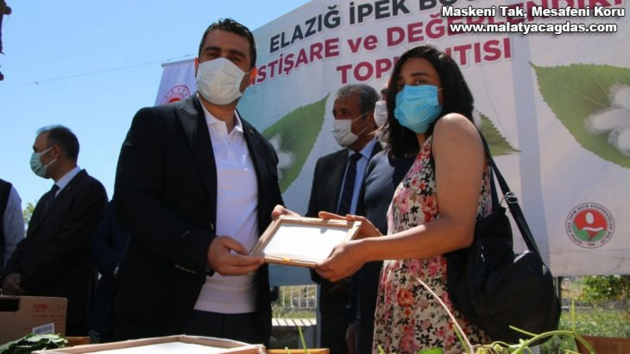 İpekböceği yetiştiriciliğinin öneminde ve paydaş kurumlarla birlikte verdikleri desteklere değinen İl Tarım ve Orman Müdürü Turan Karahan, “İpekböcekçiliği kadim tarihten beri Elazığ ilinde yapılan ancak son dönemlerde sentetik ipliklerin gelişmesiyle birlikte yok olmayla yüz yüze kalmış olan bir sektör. Biz de iki sene önce bütün paydaşlarımızla bir araya gelerek Elazığ’da bu sektörü yeniden canlandırmaya karar verdik. Valiliğimiz koordinesinde yürüttüğümüz bu proje ile birkaç köyümüzde ilk denemelerini başarılı bir şekilde yürüttüğümüz projenin Orman Bölge Müdürlüğü’nden temin ettiğimiz yaklaşık 30 bin adet çınar yapraklı dut fidanının dağıtımını yüzde yüz hibe ile gerçekleştirdik. Yine aynı şekilde 2 senede temin ettiğimiz yumurtaları üreticilerimizle buluşturduk ve başarılı denemeleri geride bıraktık. Bugün yine 140 kutu ipekböceği yumurtasını birlikten temin ederek ücretsiz bir şekilde üreticilerimize dağıtımını gerçekleştiriyoruz” dedi.