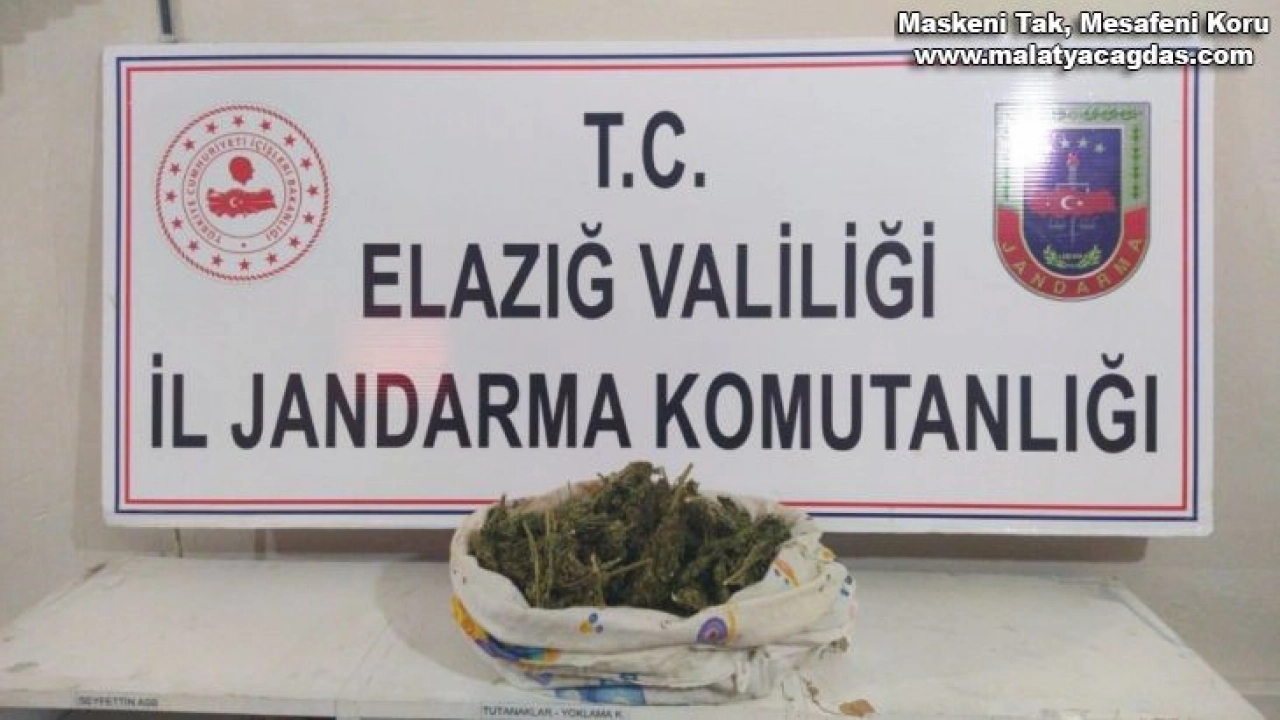 Elazığ'da jandarma ekiplerinin yaptığı çalışmada çantaya zulalanmış yaklaşık 1 kilogram esrar ele geçirildi, 1 şüpheli gözaltına alındı.