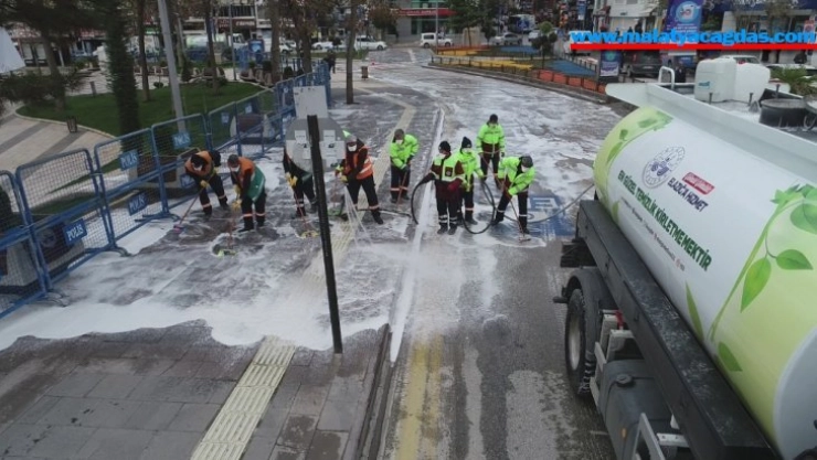 Türkiye genelinde olduğu gibi Elazığ'da da korona virüs salgını nedeniyle alınan tedbirler kapsamında kent genelinde kapsamlı temizlik çalışmaları yapılıyor.