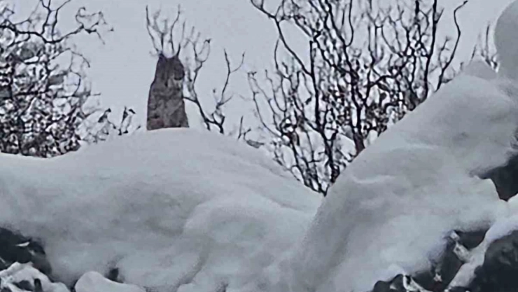 Elazığ’ın Karakoçan ilçesinde vaşak, karla kaplı dağlık alanda görüntülendi.