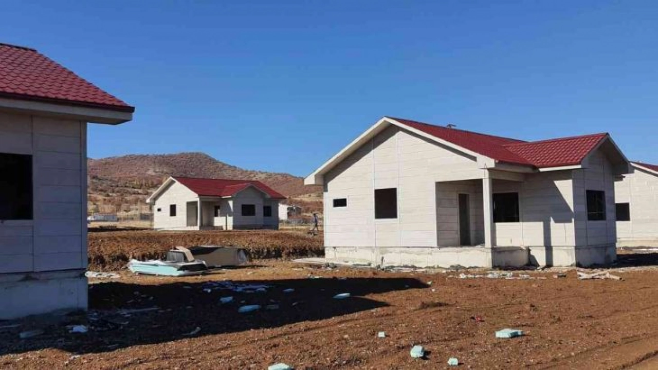 Elazığ'da 24 Ocak 2020'de meydana gelen 6.8 büyüklüğündeki deprem sonrası köylerde çelik konstrüksiyon evlerin yapımı sürüyor.