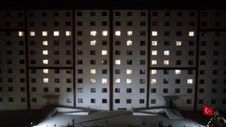Elazığ'da öğrenciler Bahar Kalkanı Harekatı'na katılan Mehmetçik için odalarının ışıklarıyla 'TSK' yazısı oluşturarak, destek verdi.