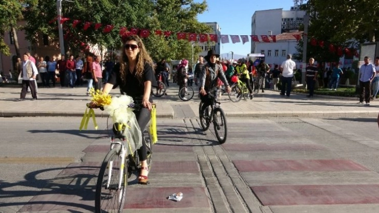Elazığ’da Süslü Kadınlar, Dünya Otomobilsiz Kentler Gününe vurgu yapmak için pedal çevirdi.