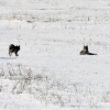 Elazığ'ın Karakoçan ilçesinde vaşak ailesi karla kaplı arazide fotoğraflandı.
