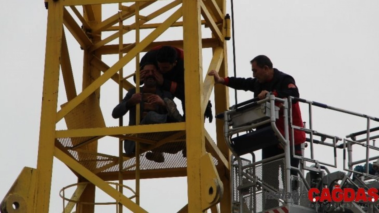 Elazığ'da bir kişi çıktığı vinçte intihar girişiminde bulundu, itfaiye ekipleri merdivenli araçla kurtardı.