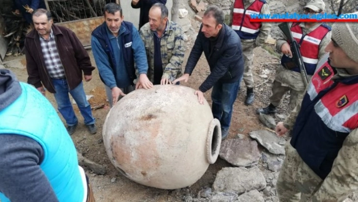 Elazığ'da meydana gelen depremde ağır hasar gören bir köy evinin mahseninden çıkan Pithos olarak bilinen 2 adet Tahıl Küpü yaklaşık 700 yıllık olması nedeniyle müzede koruma altına alındı.