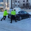 Elazığ'da yoğun kar yağışının ardından buzlanmadan dolayı yolda kalan vatandaşların imdadına Elazığ Emniyet Müdürlüğünde görevli trafik polisleri yetişti.
