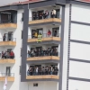 Elazığsporlu taraftarlar, cezaları nedeniyle tribünde yer alamadıkları maçı bir inşaatın balkonundan izledi.