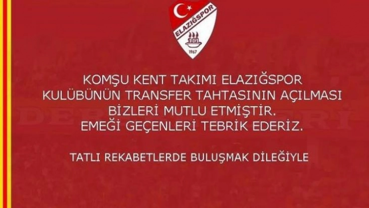 Elazığspor’un iki buçuk yıl sonra transfer tahtasını açması Elazığlı futbolseverler gibi ezeli rakibi Malatyaspor taraftarlarını da mutlu etti.