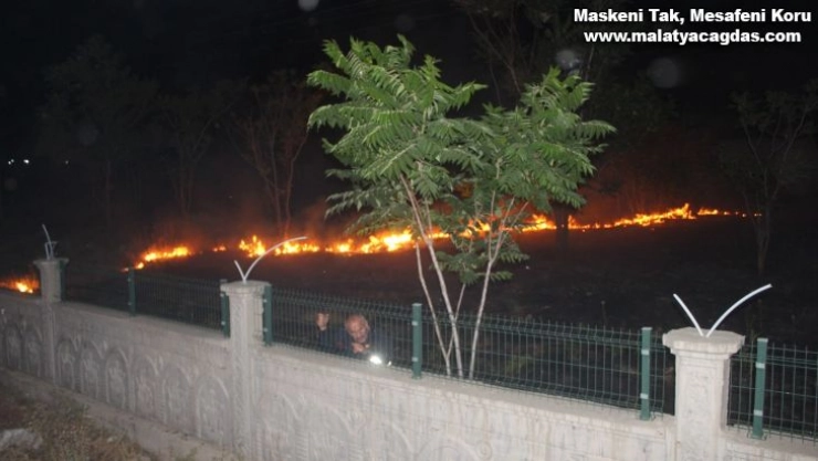 Adıyaman'da gece saatlerinde başlayan rüzgar nedeniyle bir birine temas eden elektrik tellerinden çıkan kıvılcımlar nedeniyle yangın meydana geldi.