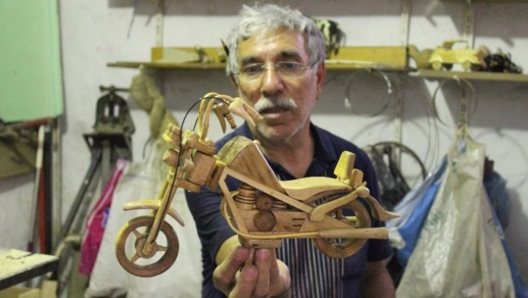 İlçede doğup büyüyen ve küçüklüğünde öğrendiği ‘Oymacılık Sanatı’nı fırsat buldukça yapan 2 çocuk ve 4 torun sahibi Hikmet Akturan (65), emekli olduktan sonra komşusunun odunluğunu tamir edip kendine bir atölye kurdu. Atölyede zamanın büyük bir bölümünü geçiren Akturan, ağaçtan minyatür araba, saz, hayvan figürleri ve köy aletleri gibi bir çok ürün ortaya çıkarmaya başladı. Memurluktan emekli olmadan önce mesai sonrasında evinde ahşaptan oyuncak ve çeşitli eşyalar üretip yakınlarına hediye eden Akturan, şimdilerde kurduğu atölyede yine yakınları başta olmak üzere dostlarına armağan edeceği çeşitli oyuncak ve malzemeleri ortaya çıkarıyor.