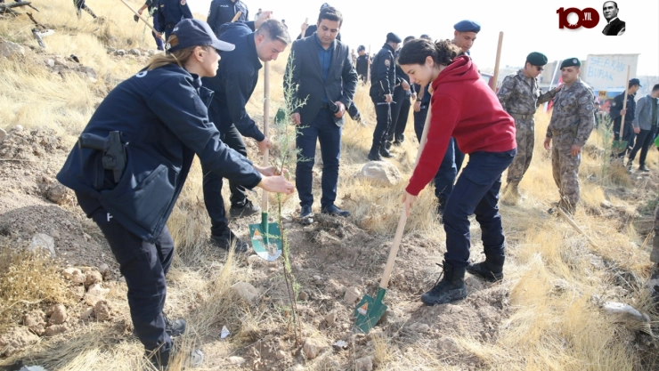 Malatya İl Emniyet Müdürlüğü ve İl Jandarma Komutanlığı ekipleri, Cumhuriyet'in 100. yılı etkinlikleri kapsamında hatıra ormanına bin fidan dikti.