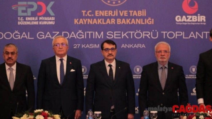 Enerji ve Tabii Kaynaklar Bakanı Fatih Dönmez, Bilkent Otel ve Konferans Salonu’nda gerçekleştirilen ‘Doğal Gaz Dağıtım Sektörü Toplantısı’na katıldı. Toplantı tanıtım filminin ardından Türkiye Büyük Millet Meclisi (TBMM) Sanayi, Ticaret Enerji, Tabii Kaynaklar, Bilgi ve Teknoloji Komisyonu Başkanı Mustafa Elitaş, Enerji Piyasası Düzenleme Kurumu (EPDK) Başkanı Mustafa Yılmaz, Türkiye Doğal Gaz Dağıtıcıları Birliği (GAZBİR) Başkanı Yaşar Arslan’ın yaptığı açılış konuşmalarıyla başladı. Toplantının açılış konuşmasını yapan Enerji ve Tabii Kaynaklar Bakanı Dönmez, doğal gaz dağıtım sektörüne ilişkin sayısal verileri açıkladı. Enerji ve Tabii Kaynaklar Bakanlığının doğal gazda ‘Vatandaş Memnuniyeti ve Beklentileri’ araştırması yaptığını belirten Dönmez, müşteri memnuniyetiyle ilgili dönütleri de paylaştı. 1987 yılından bu yana doğal gaz sektörünün gelişiminin Türkiye’nin geçirdiği büyük değişimin de aynası olduğunu aktaran Dönmez, Türkiye Cumhuriyeti’nin büyüdükçe doğal gaz sektörünün de tüm değeriyle birlikte büyüyeceğine vurgu yaptı. 2002 yılında sadece 5 büyükşehirde doğal gaz kullanıldığını hatırlatan Dönmez, günümüzde doğal gazın 81 il ve 531 ilçenin tamamında kullanıldığını belirtti. Doğal gaz abone sayısının 15 milyon 800 bine ulaştığını söyleyen Dönmez, doğalgazdan yararlanan kişi sayısının da 66 milyon 500 bin olduğunu aktardı. Dönmez, Cumhurbaşkanı Recep Tayyip Erdoğan’ın göreve geldikten sonra “Doğal gazı olmayan şehir kalmayacak” sözünü hatırlatarak, BOTAŞ ve illerde bulunan enerji dağıtım şirketlerinin bu uğurda büyük bir özveriyle çalıştığını dile getirdi. Bakan Dönmez, “Doğal gaz iletim ve dağıtım altyapımızın yıldan yıla nasıl bir gelişim kaydettiğini, nereden nereye geldiğini görüyorsunuz. 2002 yılında iletim ağımız 4 bin 500 kilometre iken, bugün 4 kat artışla 18 bin kilometreye ulaştı. Daha rahat anlaşılması için şu örneği vermek istiyorum. Türkiye’nin bir ucundan diğer ucunu 9 defa kat edebilecek bir altyapıdan söz ediyoruz. Dağıtım altyapımız ise videoda da bahsedildiği üzere dünyanın etrafını 3,5 kez dolaşabilecek büyüklüğe erişti” ifadelerini kullandı.