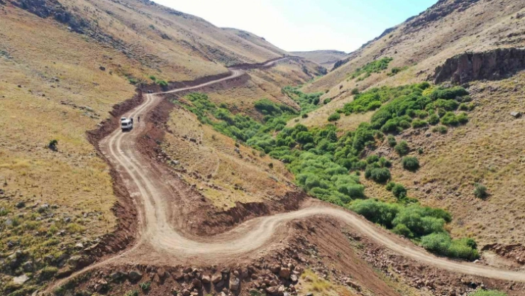 Van’da kırsal mahallelerde tarım ve hayvancılığı geliştirmeye yönelik çalışmalarını sürdüren büyükşehir belediyesi, çiftçilerin daha fazla verim alması için projelerini bir bir hayata geçiriyor. Bu çerçevede Erciş ilçesine 140 kilometre uzaklıkta bulunan Mağara ve Evbeyli mahallelerinin yayla yollarında iyileştirme çalışmaları yapıldı. Daha önce Dövenci Mahallesi’nden 1,5 saatlik zorlu yolculuğun ardından ulaşılan yayla için 5.5 kilometrelik yeni yol yapıldı. Kırsal Hizmetler Daire Başkanlığı ekiplerinin zorlu arazi şartlarında gerçekleştirdiği hummalı çalışma sonucu tamamlanan yeni yol, geçimini tarım ve hayvancılıkla sağlayan mahalle sakinlerinin yüzünü güldürdü.