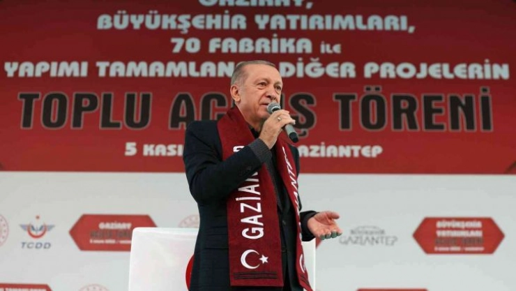 Cumhurbaşkanı recep Tayyip Erdoğan, Gaziantep İstasyon Meydanı’nda gerçekleştirilen 169 eser, hizmet ve fabrikanın açılışını yaptı. Toplu açılış için hazırlanan kurdelenin kesimi öncesinde konuşan Erdoğan, muhalefete fabrika göndermesi yaptı. Gaziantep Organize Sanayi Bölgesi Başkanı Cengiz Şimşek’ten fabrikaları saymak isteyen muhalefete yardımcı olmasını isteyen Erdoğan, “Gaziantep’in geldiği yer bir elin nesi var iki elin sesi var sözünün en somut örneğidir. Biliyorsunuz 2 yıl önceki ziyaretimizde Gaziantep’te 300 fabrikayı birden hizmete açmıştık. Ülkede fabrika kalmadığını iddia eden muhalefet buna inanmayıp, gelip Gaziantep’te fabrika saymaya kalkmıştı. Gerçi bunların hesapları 300 fabrikayı saymaya yetmeyeceği için onu bile doğru dürüst beceremediler. Bu günde o tarihten bu yana yapımı tamamlanan 70 yeni fabrikanın açılışını yapıyoruz. Buradan Organize Sanayi Bölgesi Başkanımız Cengiz Bey’den rica ediyorum. Kendisi Gaziantep’e gelip, bu fabrikaları saymaya çalışacaklara yardımcı olsun. Çünkü şehirdeki 1200 fabrika arasında bu yeni eserleri bulmakta zorluk çekebilirler. Gerçi 6. organize faaliyete geçip de fabrika sayısı 2 bine dayanınca bunların işi iyice zorlaşır ama yapacak bir şey yok. Artık o kadarına da katlanacaklar” dedi.
