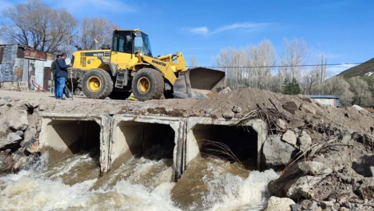 Aşkale’nin Çiftlik Köyünde kar sularının erimesiyle debisi yükselen dere köy yollarını birbirine bağlayan köprüyü yıktı.