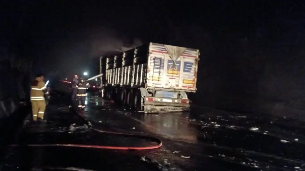 Erkenek Tüneli'nde kömür yüklü tır'da yangın