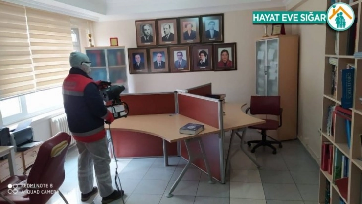Belediye ekipleri, korona virüsü ile mücadele kapsamında tedbir amaçlı bugüne kadar birçok kamu kurum ile kuruluşlarında vatandaşların yoğun olarak kullandığı alanlarda dezenfekte çalışmalarını sürdürüyor.