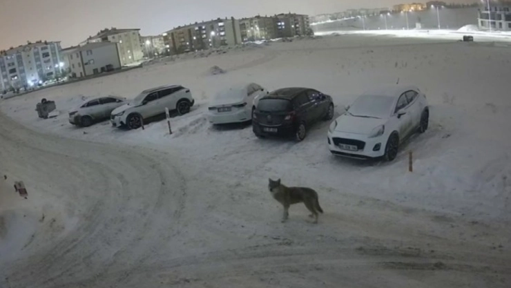 Erzurum'un Palandöken ilçesinde bir sitenin güvenlik kameralarına yansıyan kurt, çevre halkını tedirgin etti.