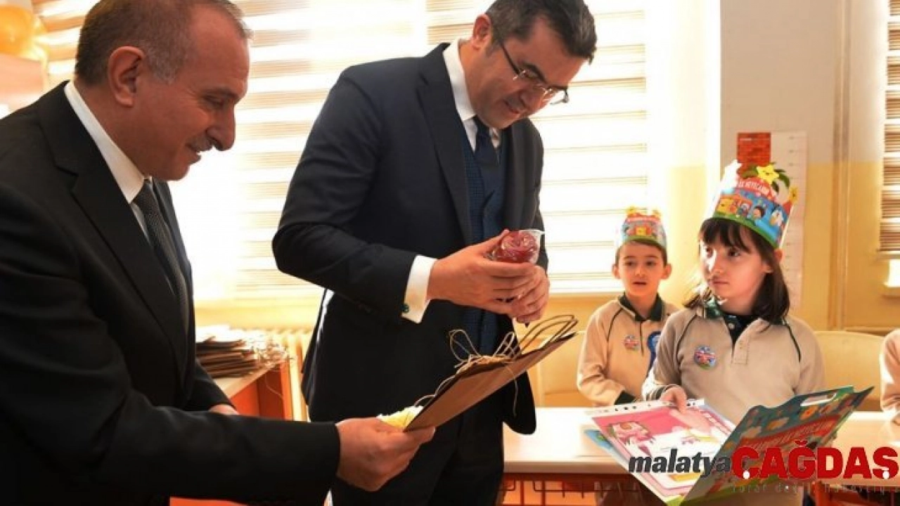 Konuşmasının ardından karne dağıtan Vali Memiş, öğrencilere elma şekeri ve kitap da hediye etti.