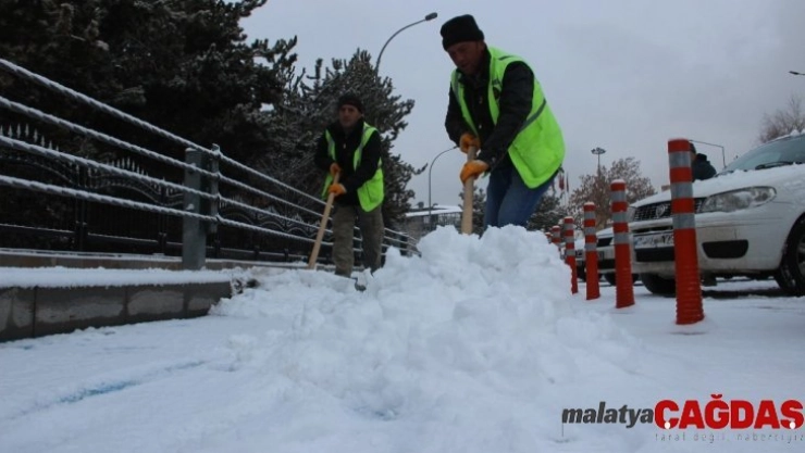 Erzurum'da gece saatlerinde başlayan kar yağışı zemini kapladı. Güne beyaz örtü ile uyanan vatandaşlar, ev ve iş yerlerinin önünü temizledi. Büyükşehir Belediyesine bağlı ekipler, cadde ve yollarda kar temizleme çalışması yaptı.