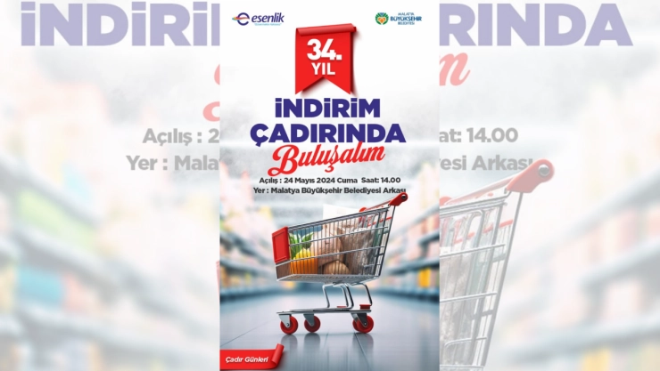 Esenlik Marketler, 34. kuruluş yıldönümüne özel düzenlediği kampanya ile müşterilerine büyük bir indirim fırsatı sunuyor. Malatya Büyükşehir Belediye arkasında 24-30 Mayıs tarihleri arasında, toplam 7 gün sürecek olan indirim çadırında, stoklar her gün eşit miktarda satışa sunulacak.