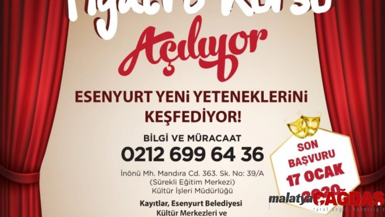 Esenyurt Belediyesi Kültür İşleri Müdürlüğünün 15 yaş ve üzeri vatandaşlar için açtığı Tiyatro Kursu’nun yeni dönem başvuruları başladı. Kursa kayıt olmak isteyen vatandaşlar, 17 Ocak 2020 tarihine kadar Esenyurt Belediyesinin tüm kültür merkezleri ve bilgi evlerinden başvurularını yapılabilecek. 15 yaş ve üzeri tüm vatandaşların başvurabileceği kursta, kursiyerlere yıl boyunca ücretsiz eğitim verilecek. Başvuru sürecinin tamamlanmasının ardından, katılım yoğunluğuna göre sınıflar belirlenerek, öğrencilere uzman öğretmenler tarafından eğitim verilecek. Kursiyerler, ders yılı süresince ücretsiz olarak doğaçlama, mimik, oyun İncelemesi, diksiyon, hareket, tiyatroda ritim ve ses derslerini görecek. Esenyurt Belediyesinin açtığı bu kurs, tiyatro oyunculuğunu profesyonel anlamda yapmak isteyen öğrenciler içinde konservatuarlara giriş kapısı olacak.